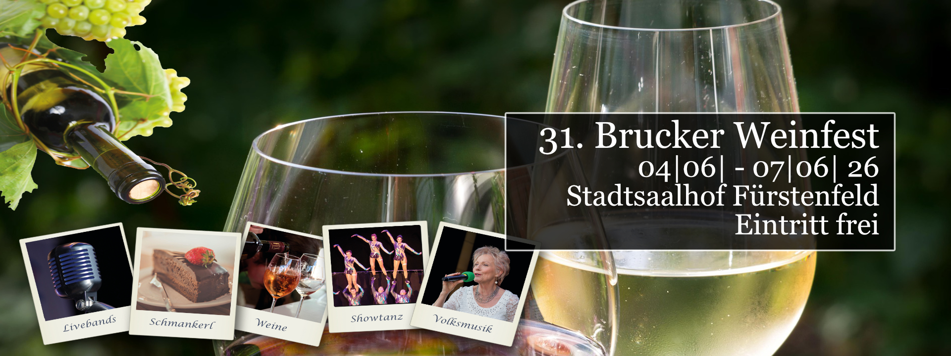 Kulinarisch werden Sie von der Küche des Fürstenfelder Restaurants verwöhnt. Neben dem umfangreichen, internationalen Buffet im Foyer des Stadtsaales sind auch die Getränke (Erfrischungsgetränke, Wein, Bier, Sektempfang, Mitternachtssekt und Kaffeespezialitäten) sowie die Garderobe im Eintrittspreis enthalten.